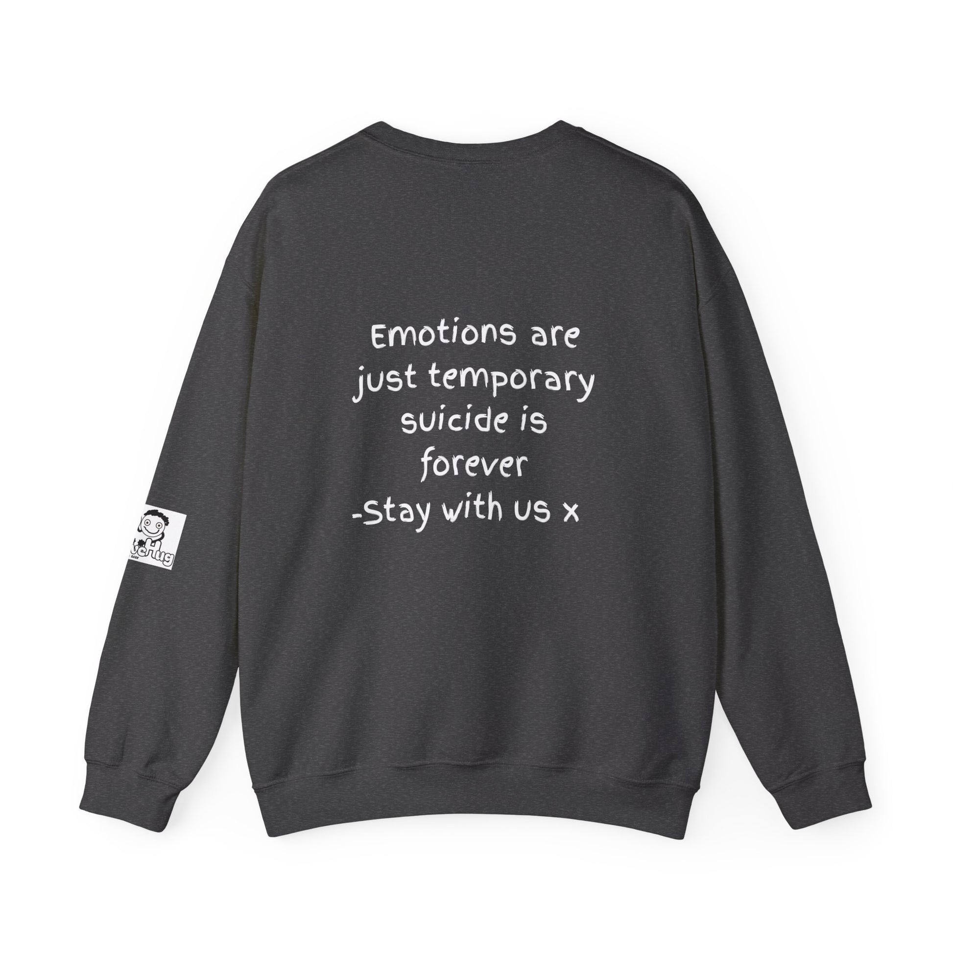 'Emotions are just temporary. Suicide is forever. Stay with us x' Inspirational Crewneck Sweatshirt - Mental Health Awareness
