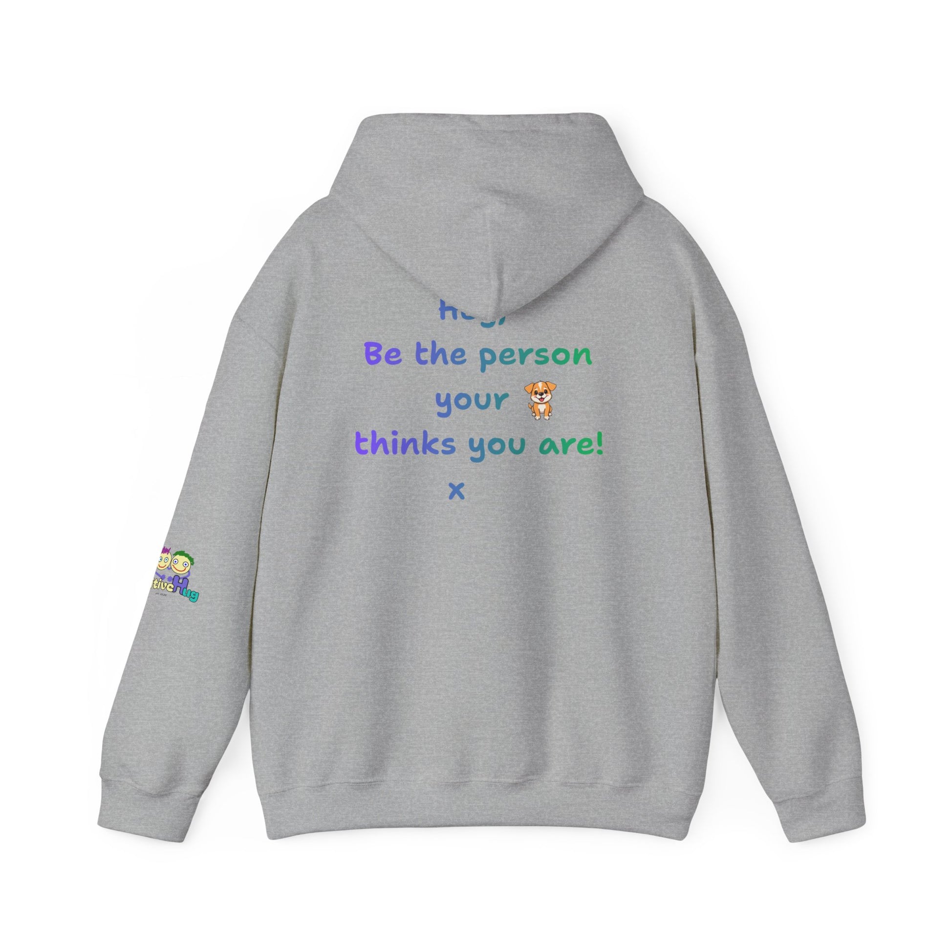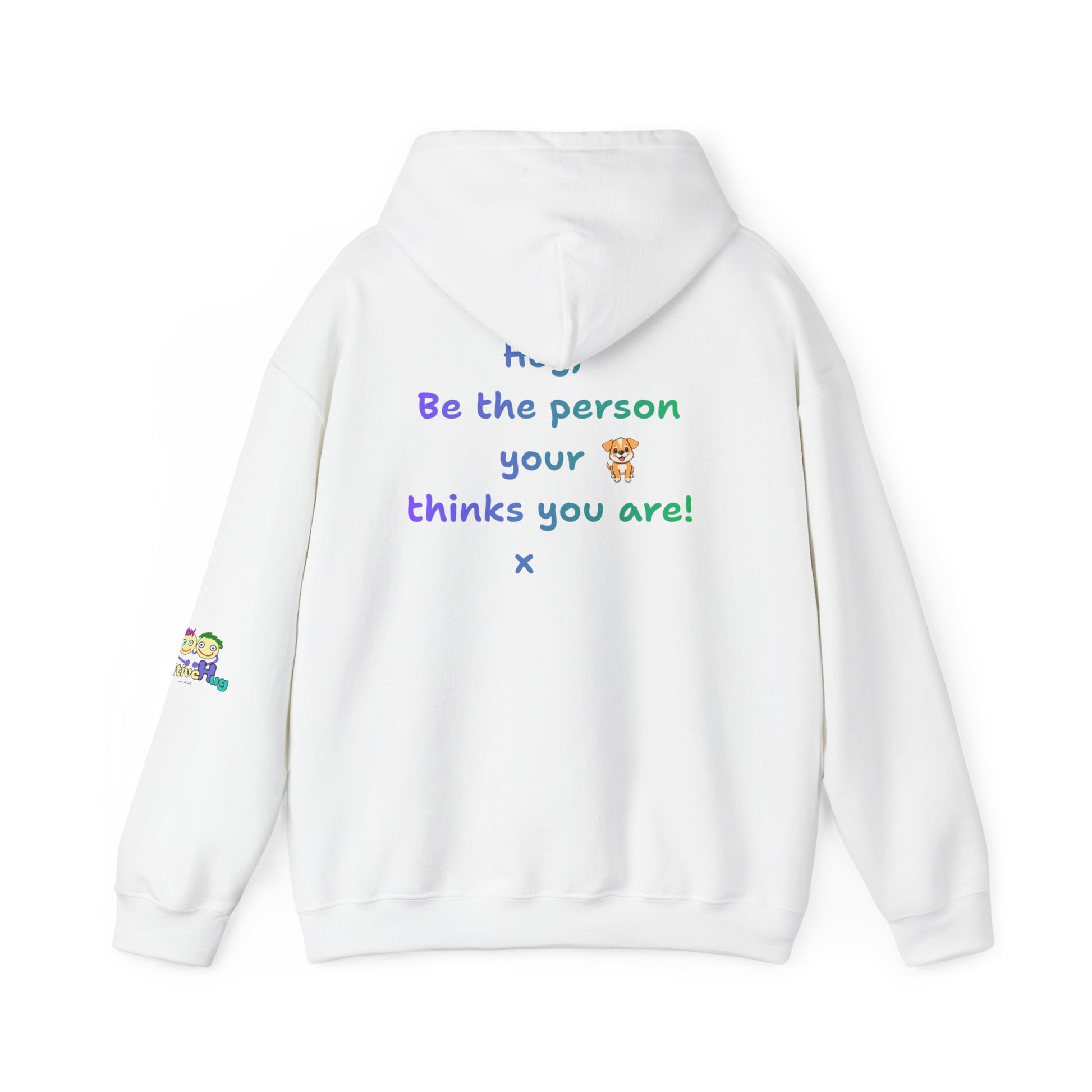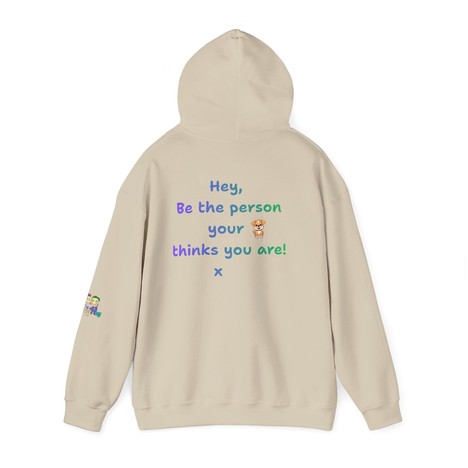 'Hey, Be the person your dog thinks you are x' Unisex Hooded Sweatshirt by PositiveHug - Design on back