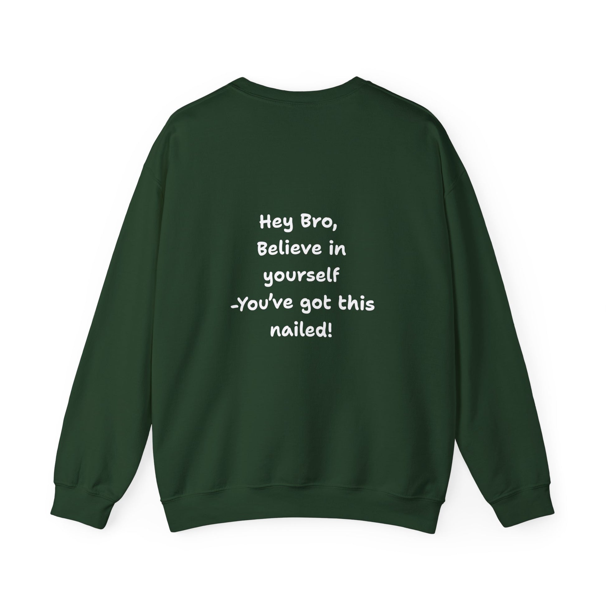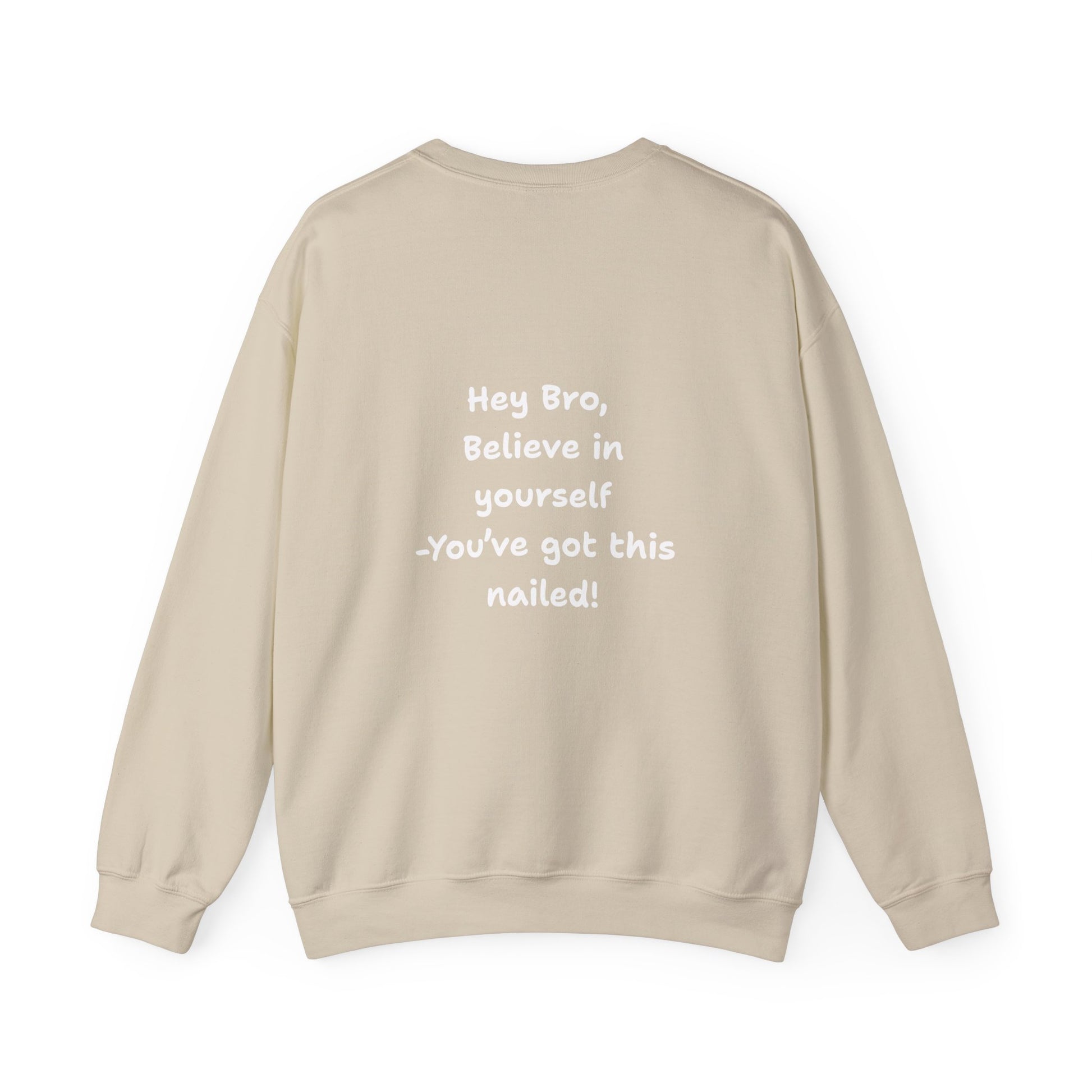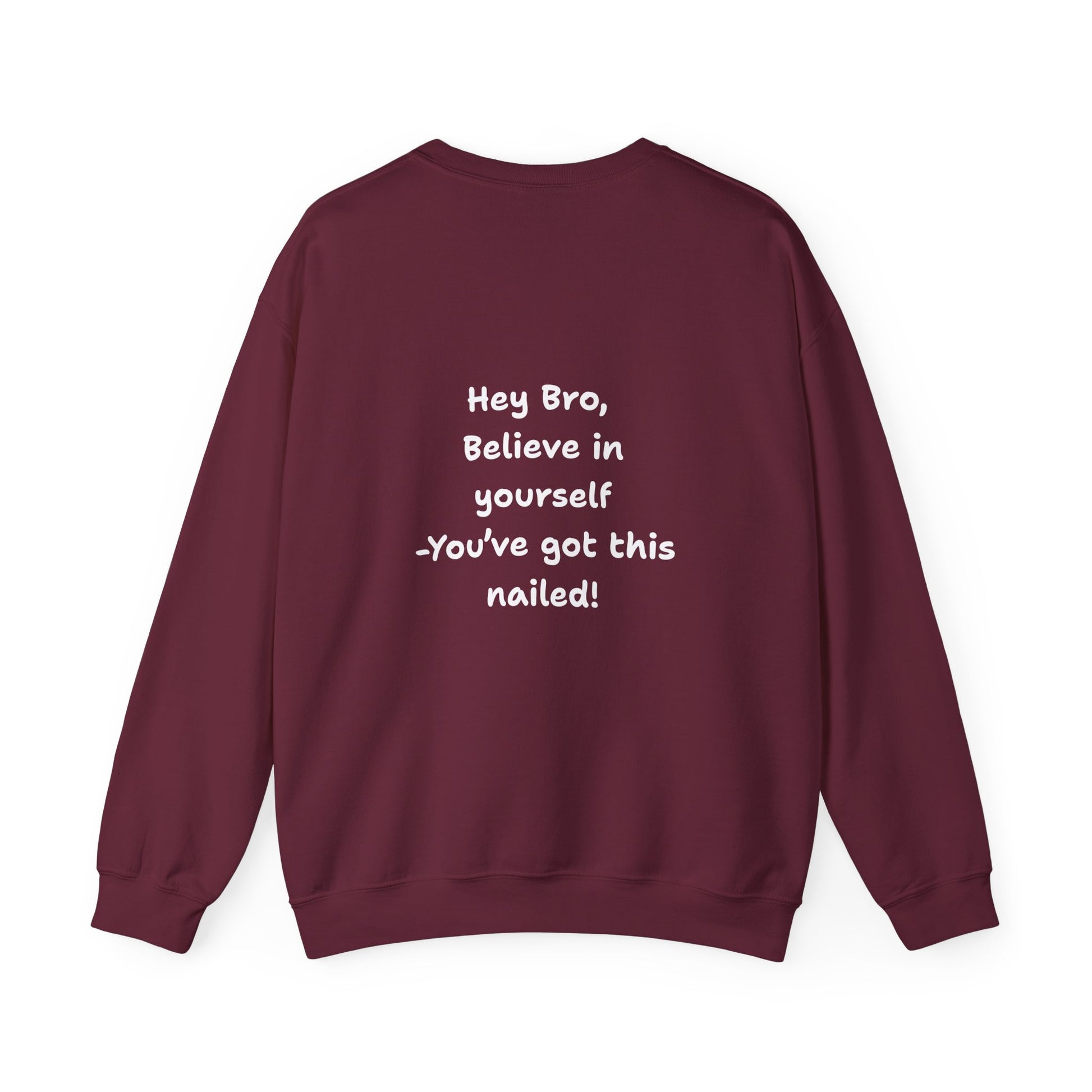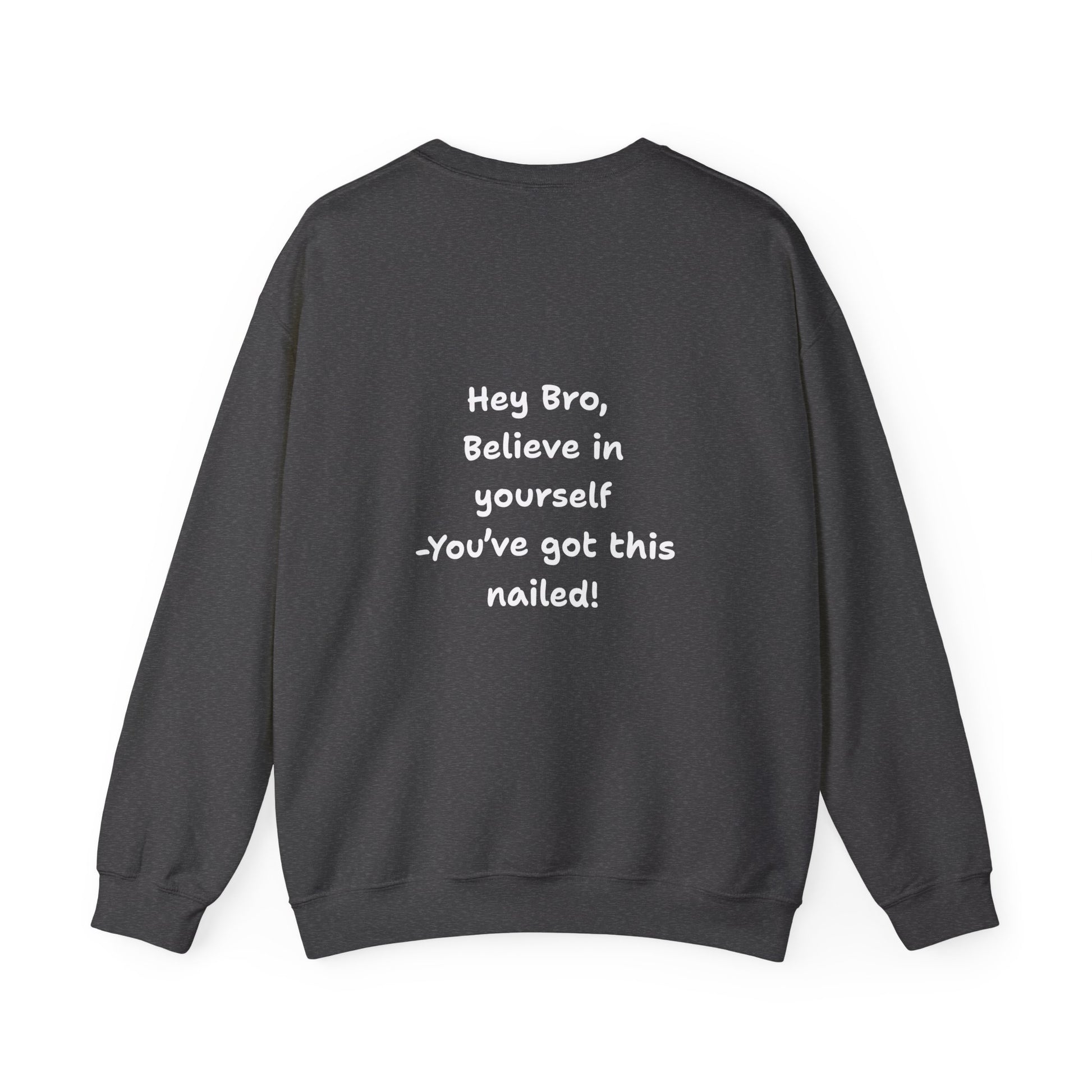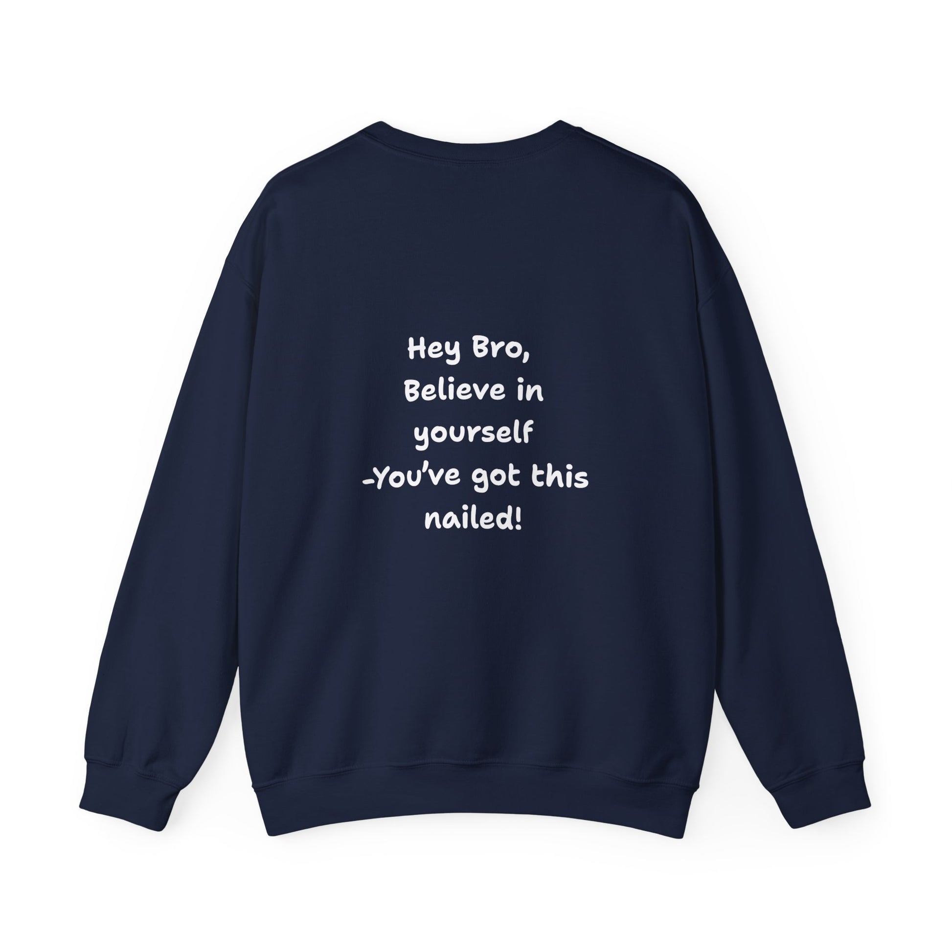 Hey Bro, Believe in yourself. You've got this nailed!' Crewneck Sweatshirt by PositiveHug