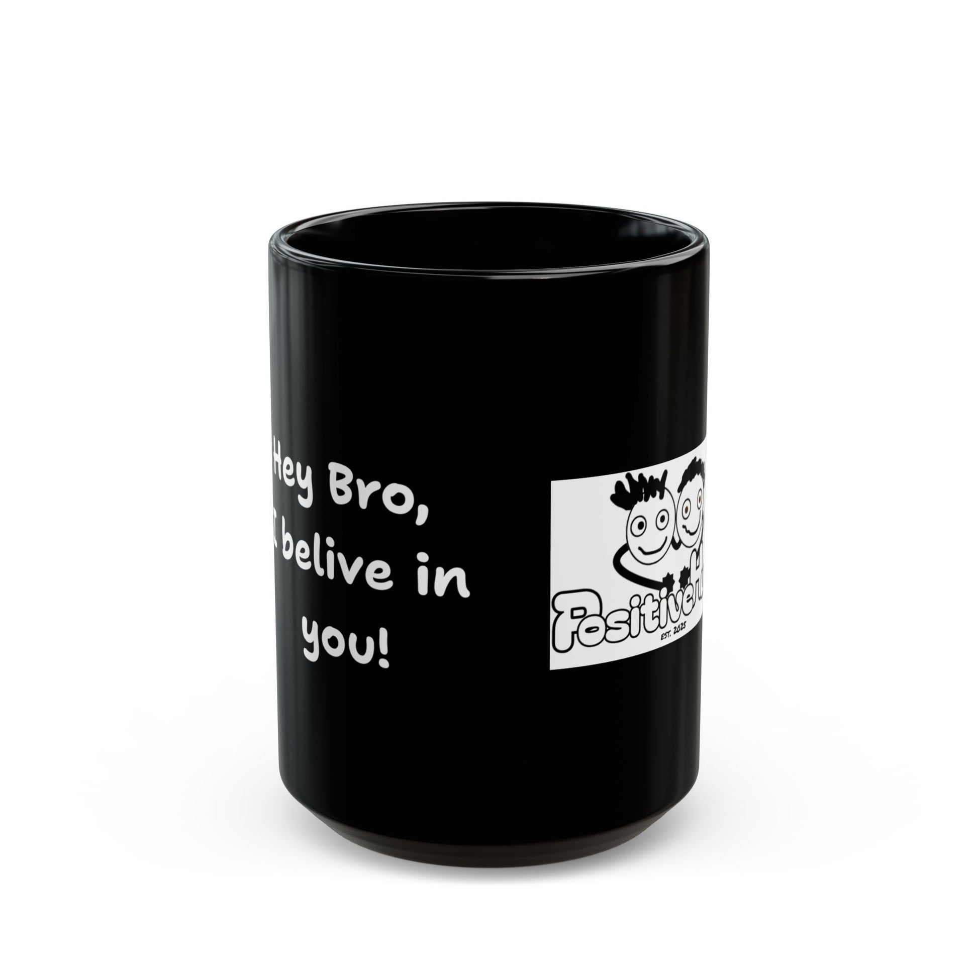 Hey Bro, I believe in you! ' PositiveHug Black Mug - Motivational Coffee Cup for Inspiration and Support