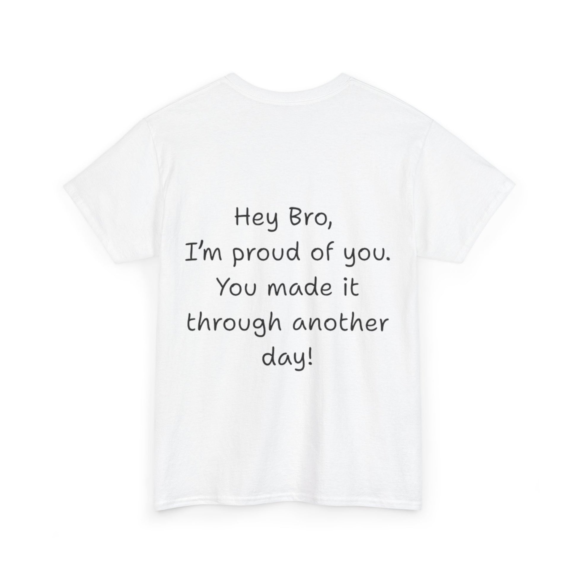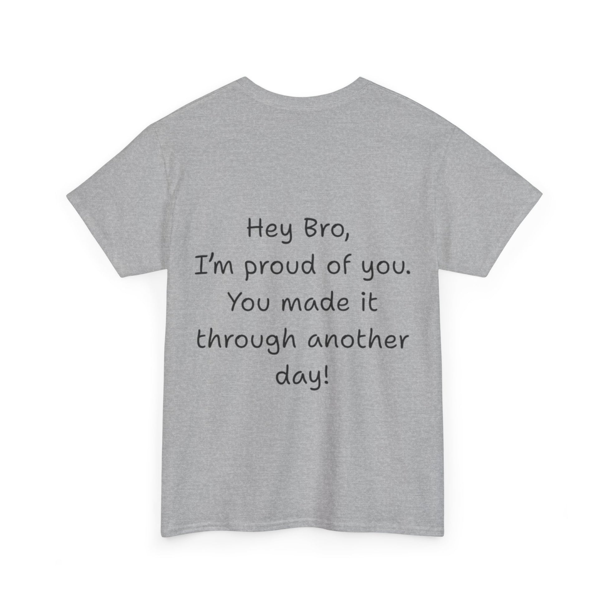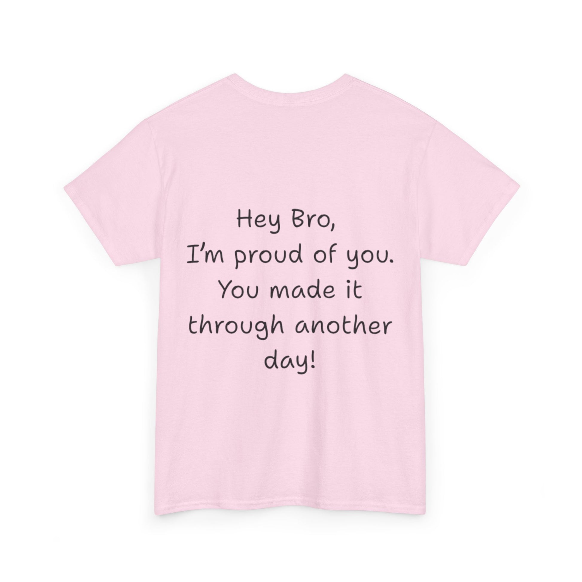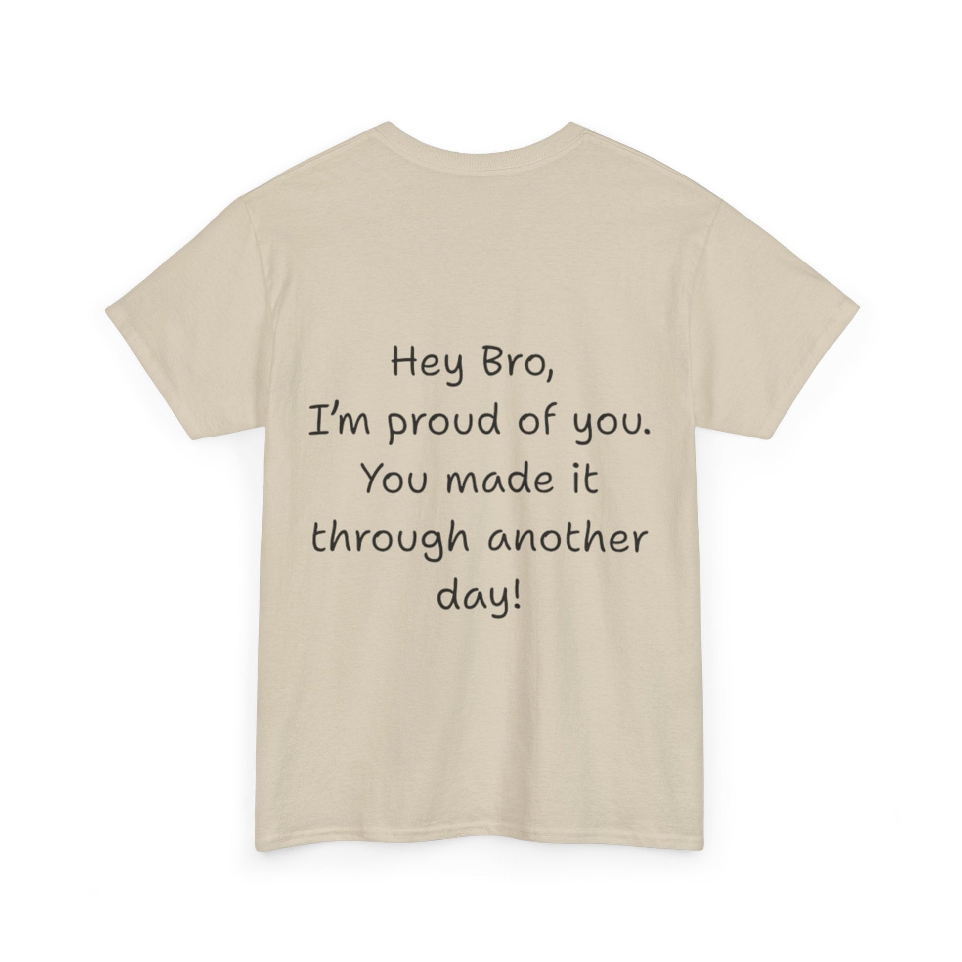 ' Hey Bro, I'm proud of you' Motivational Unisex Heavy Cotton Tee, Design on back, Inspirational T-Shirt, Positive Message Shirt, Gift for Friends, Casual Wear for Everyday