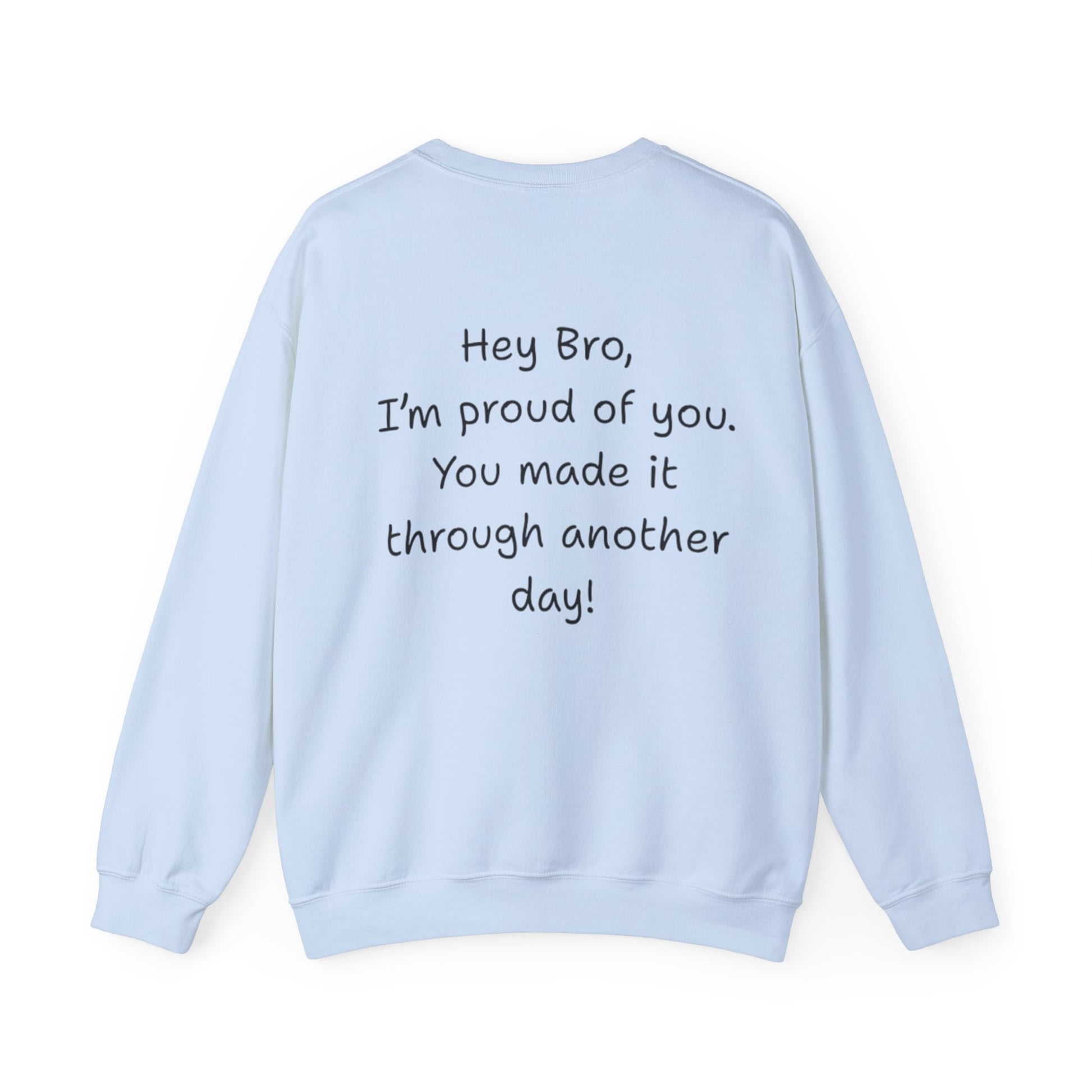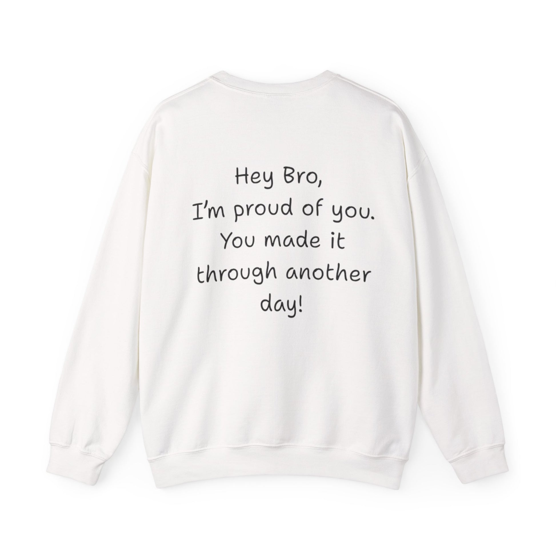 'Hey Bro, I'm Proud of you, You made it through another day! ' Motivational Crewneck Sweatshirt Unisex, Quote on back
