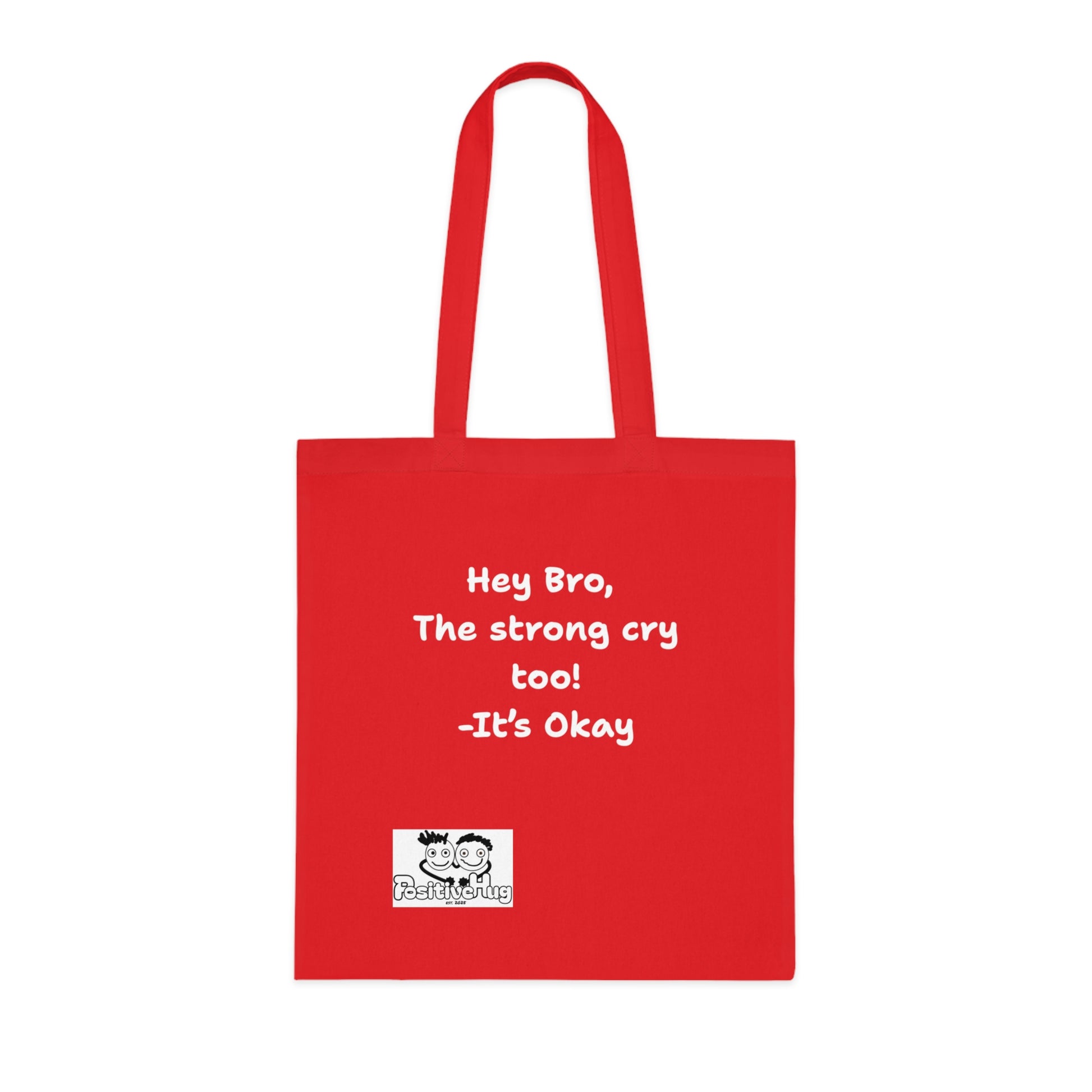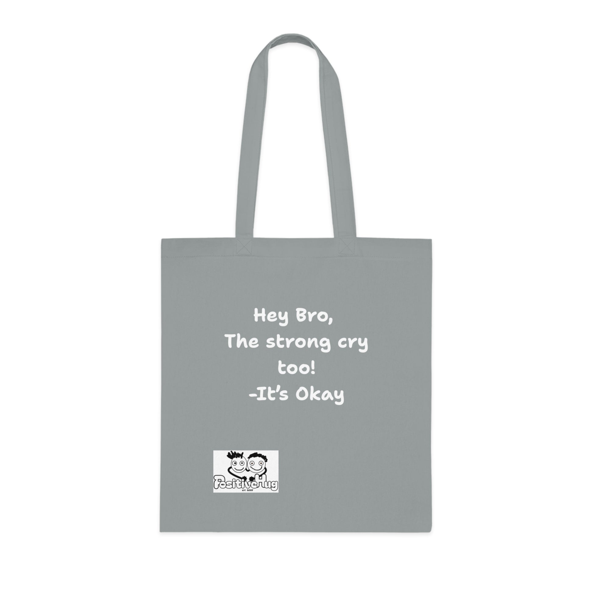 'Hey Bro, The strong cry too! It's Okay 'Positive Vibes Cotton Tote Bag - by PositiveHug Inspirational & Fun Design