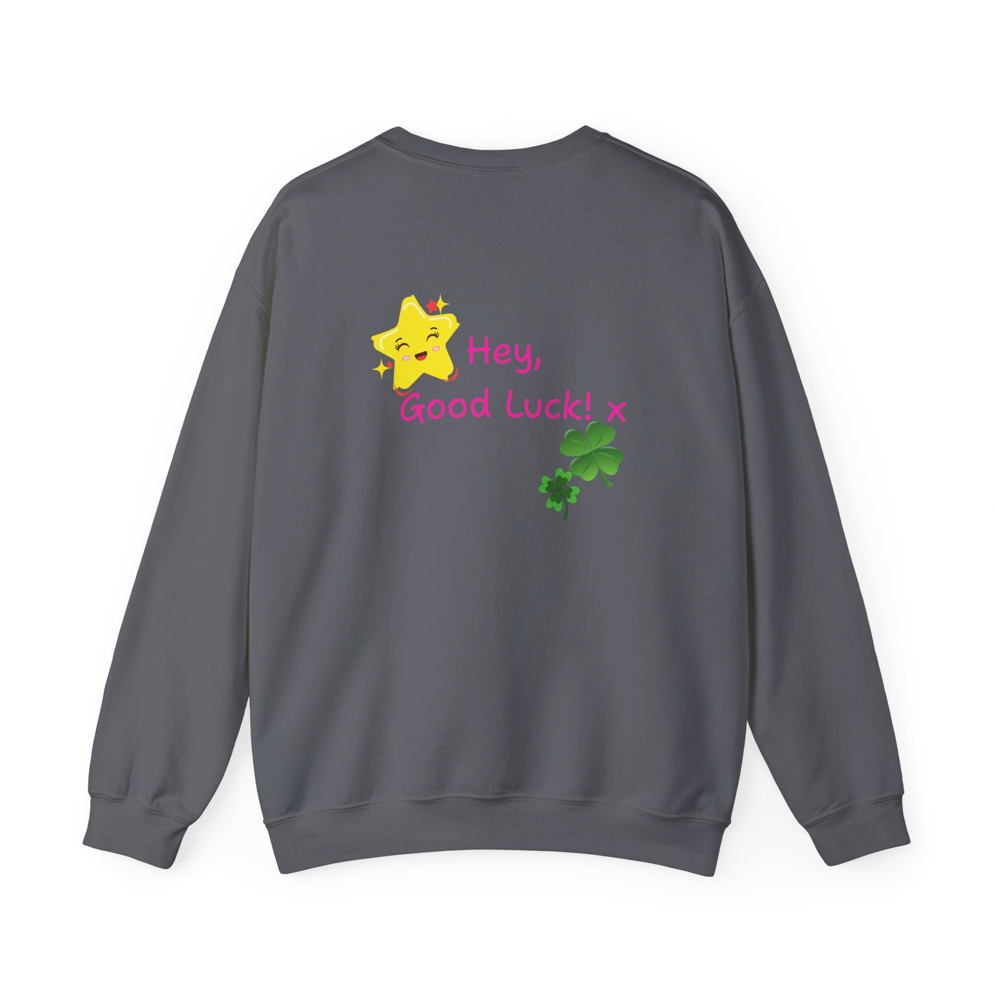 'Hey Good Luck! x ' Motivational Crewneck Sweatshirt Unisex, Quote on back
