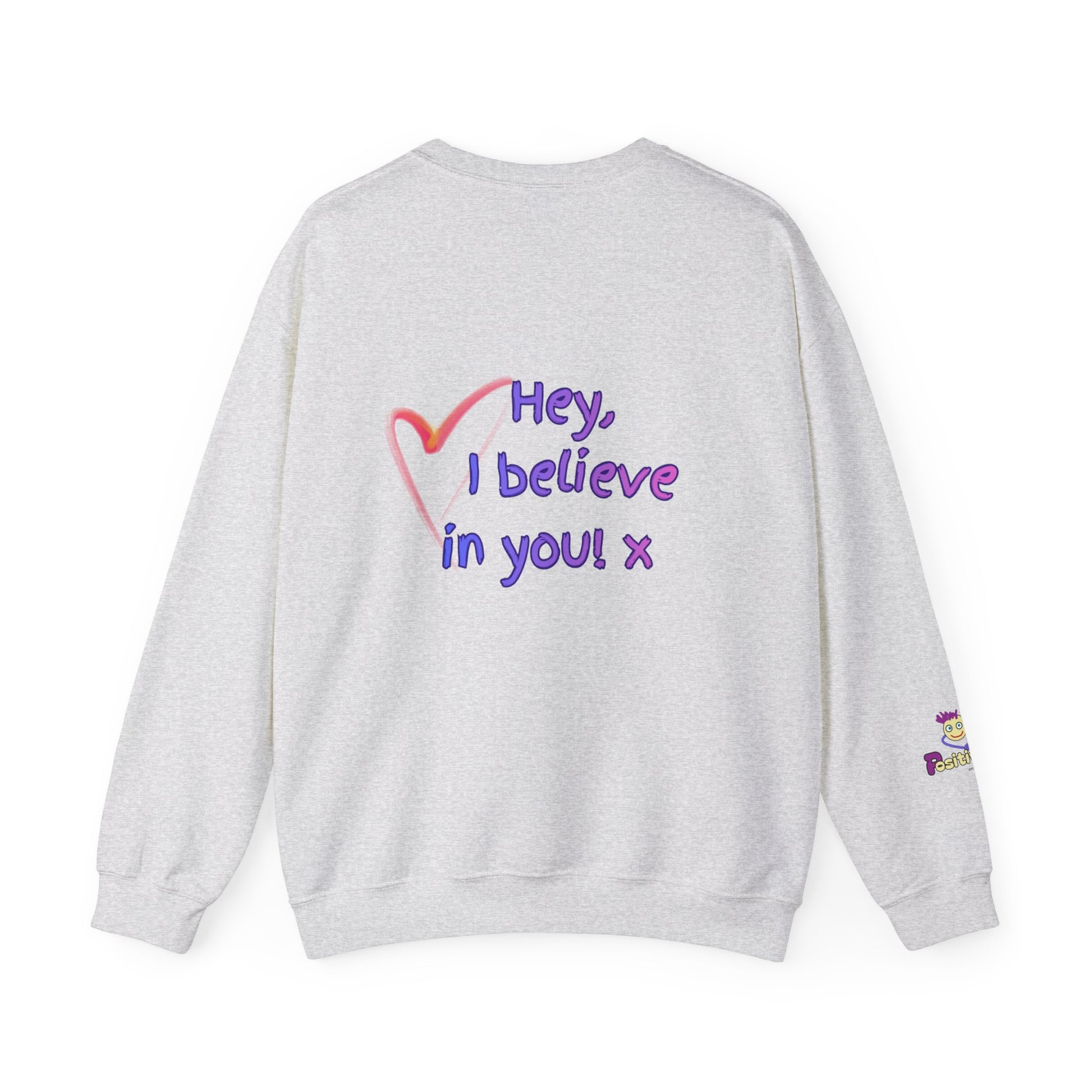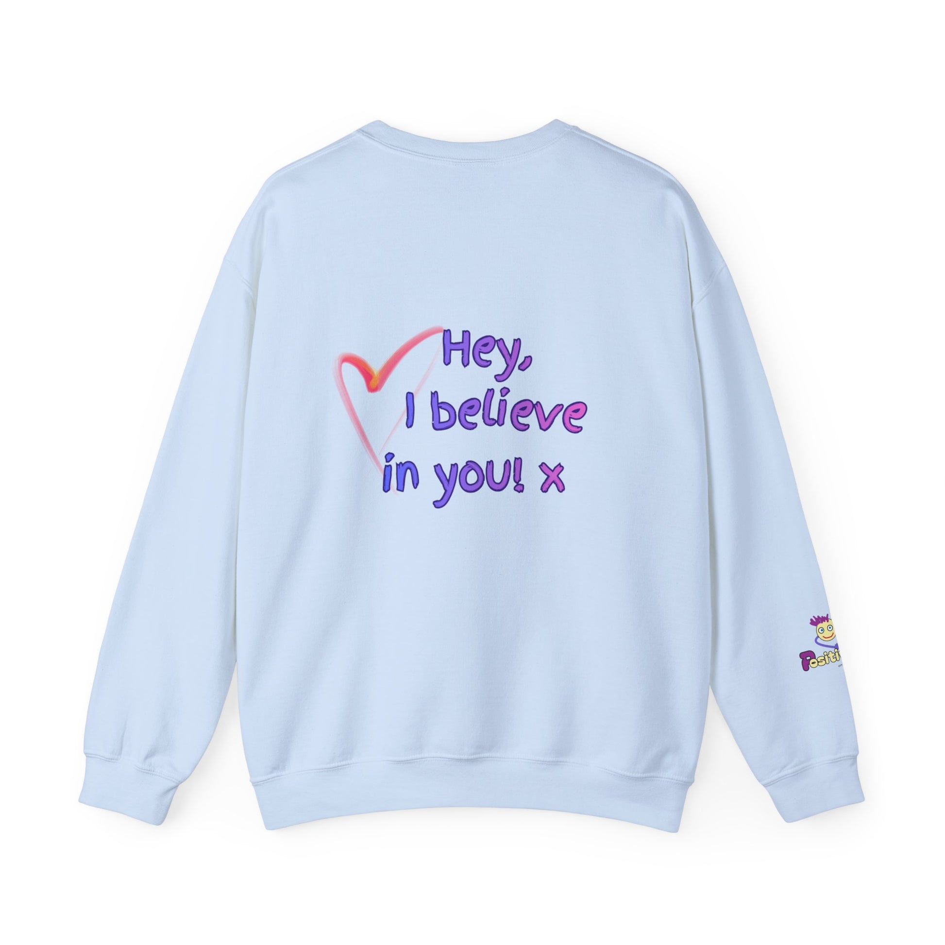 'Hey, I believe in you! x ' Motivational Crewneck Sweatshirt Unisex, Quote on back