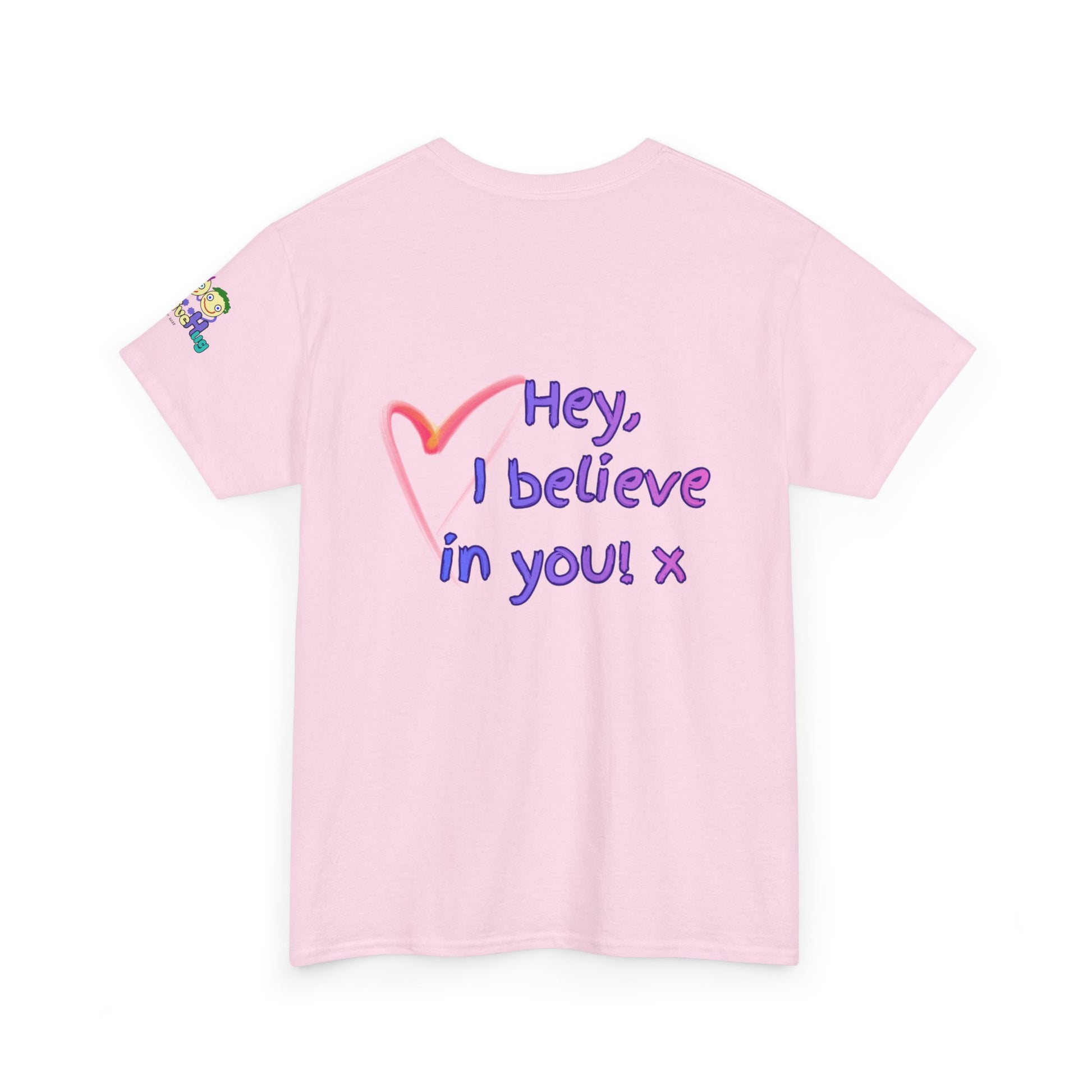 'Hey, I believe in you! x ' Quote on back, Motivational Tee