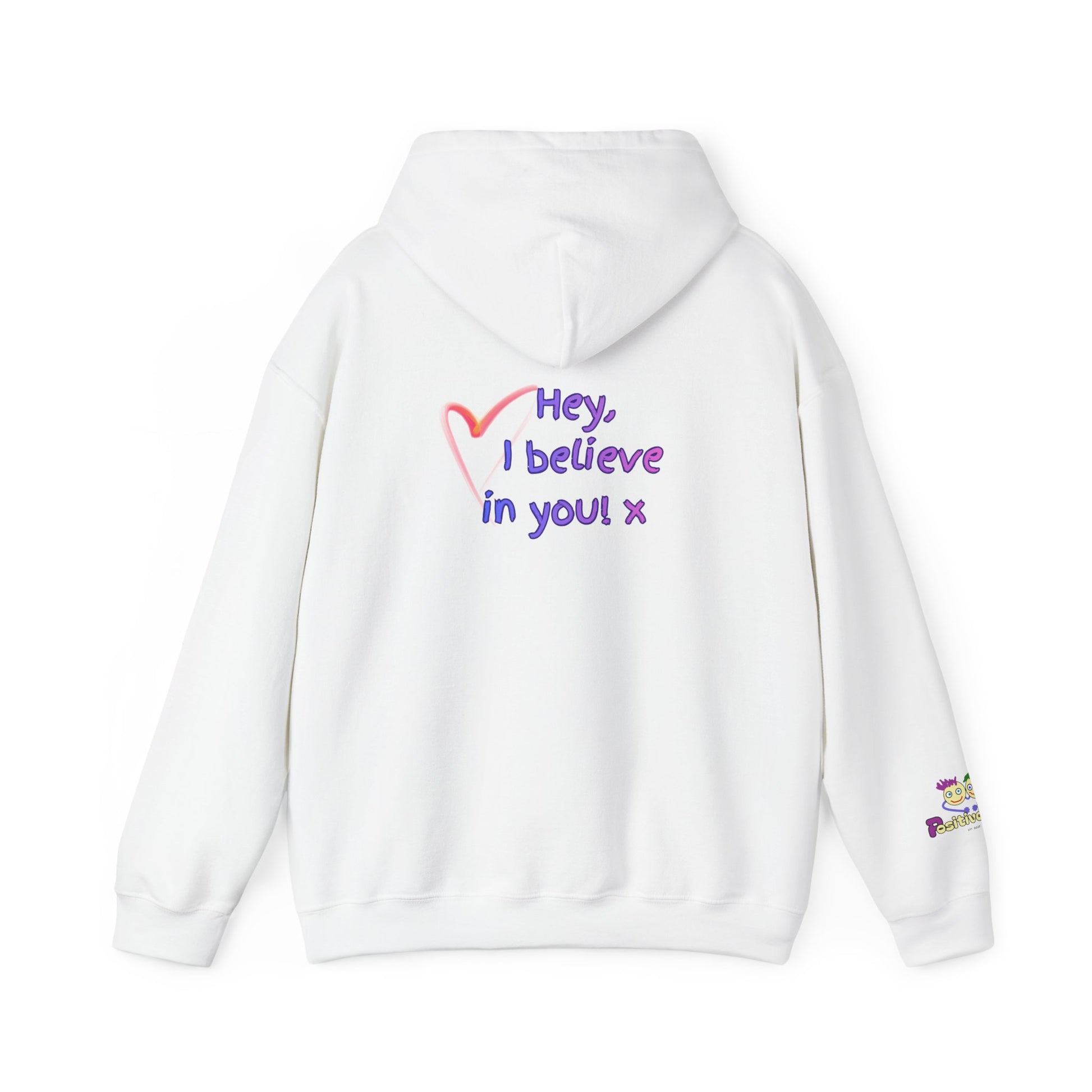 'Hey, I believe in you! x' Unisex Hooded sweatshirt by PositiveHug - Design on back