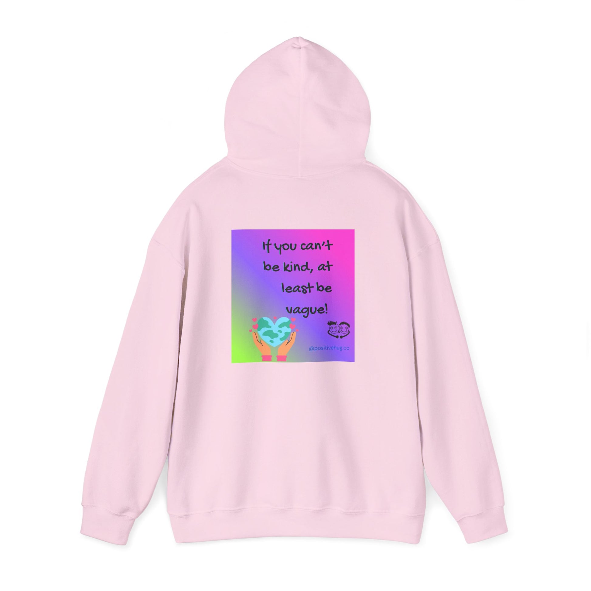 If You Can't Be Kind Be Vague hoodie | Graphic Quote Heart Back Print | Positivity Clothing | Be Kind Hoodie