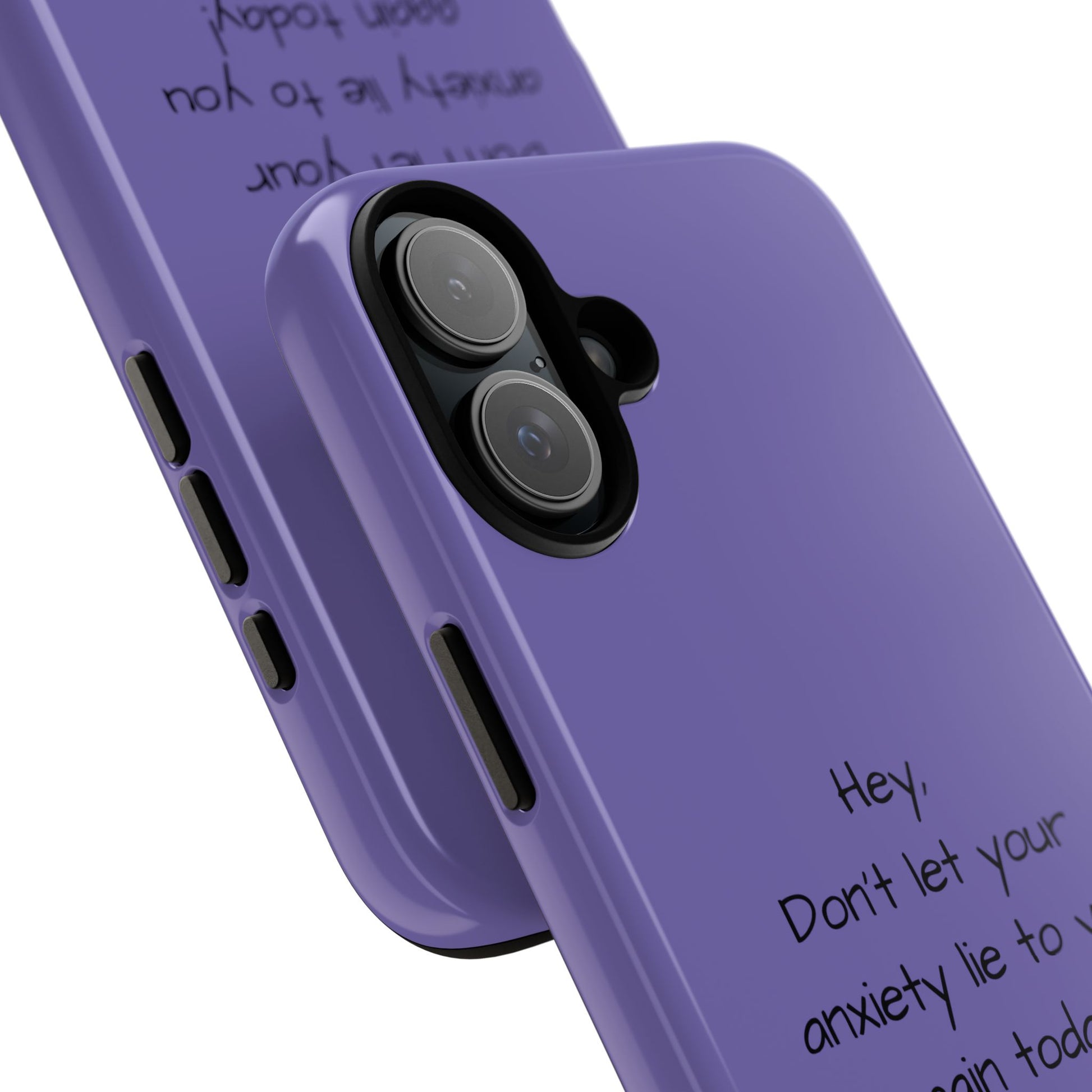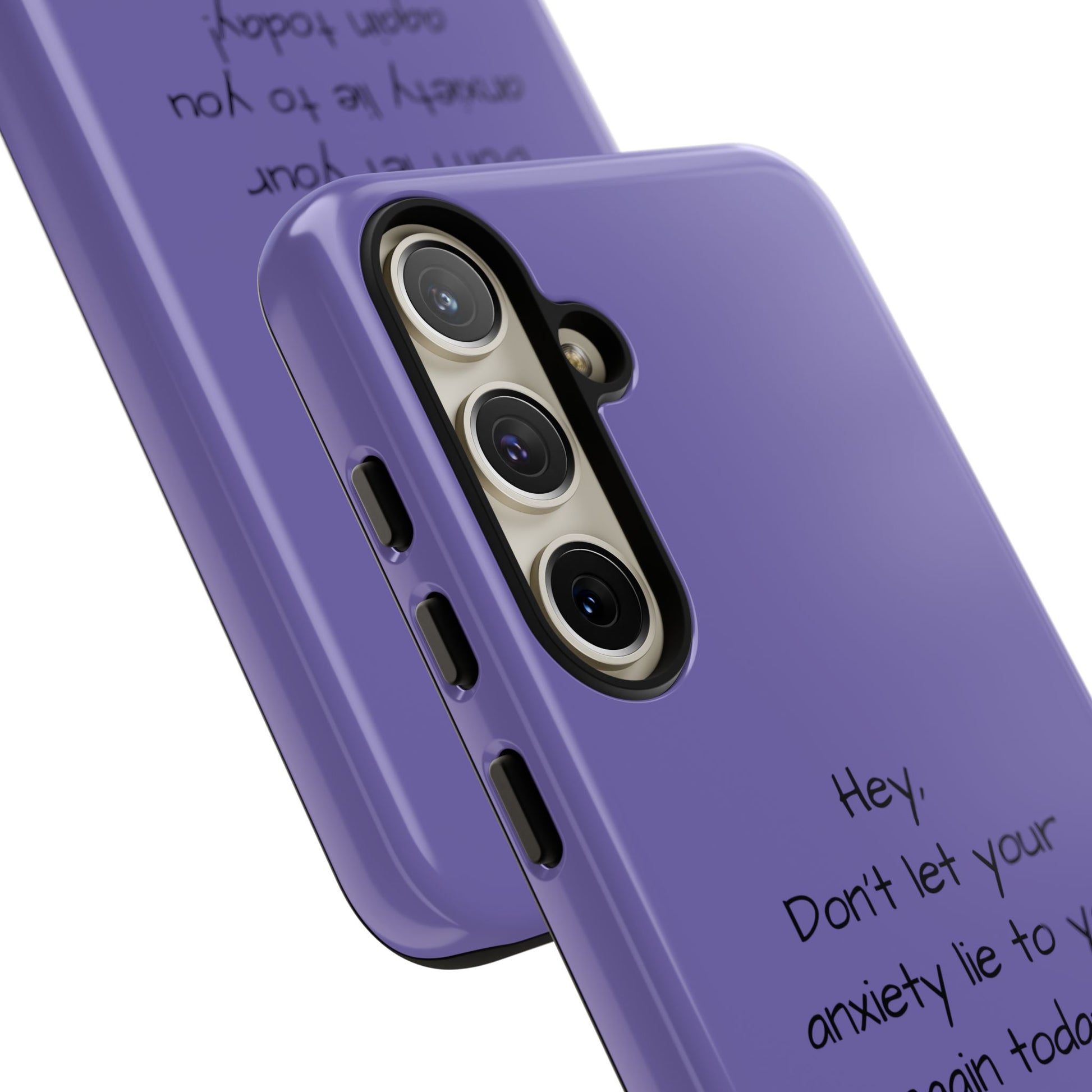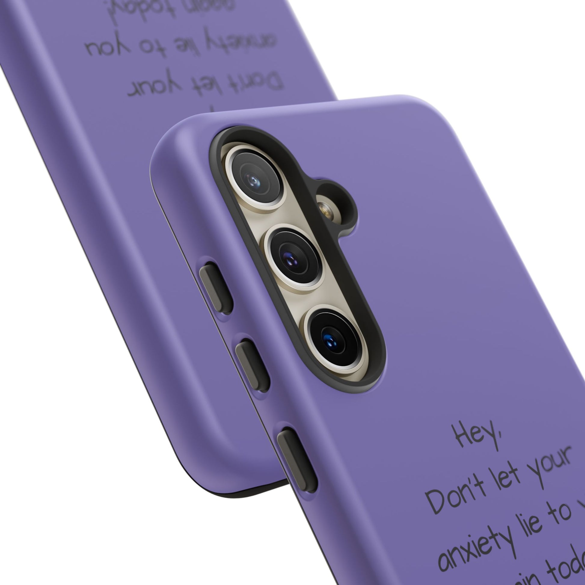 'Hey Don't let your anxiety lie to you again today!' Positive Vibes Phone Case - Anxiety Reminder, Colorful Tough Case