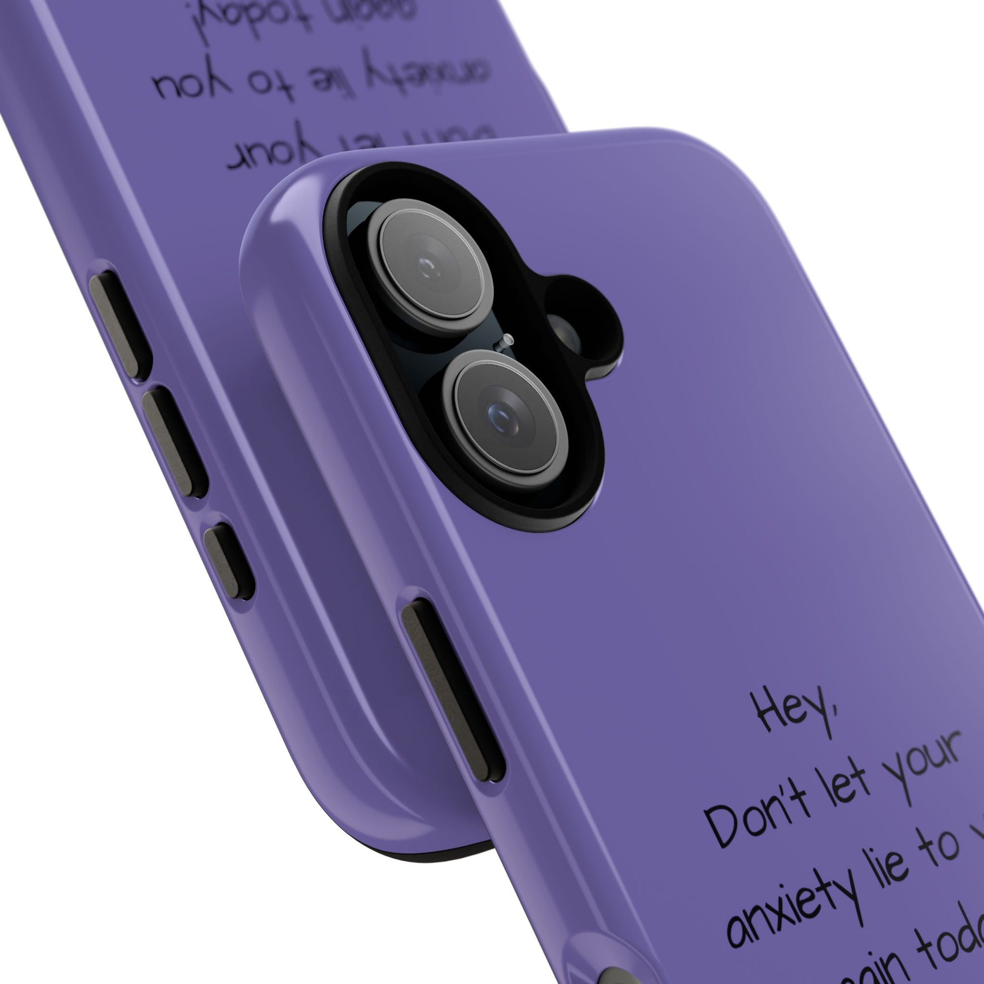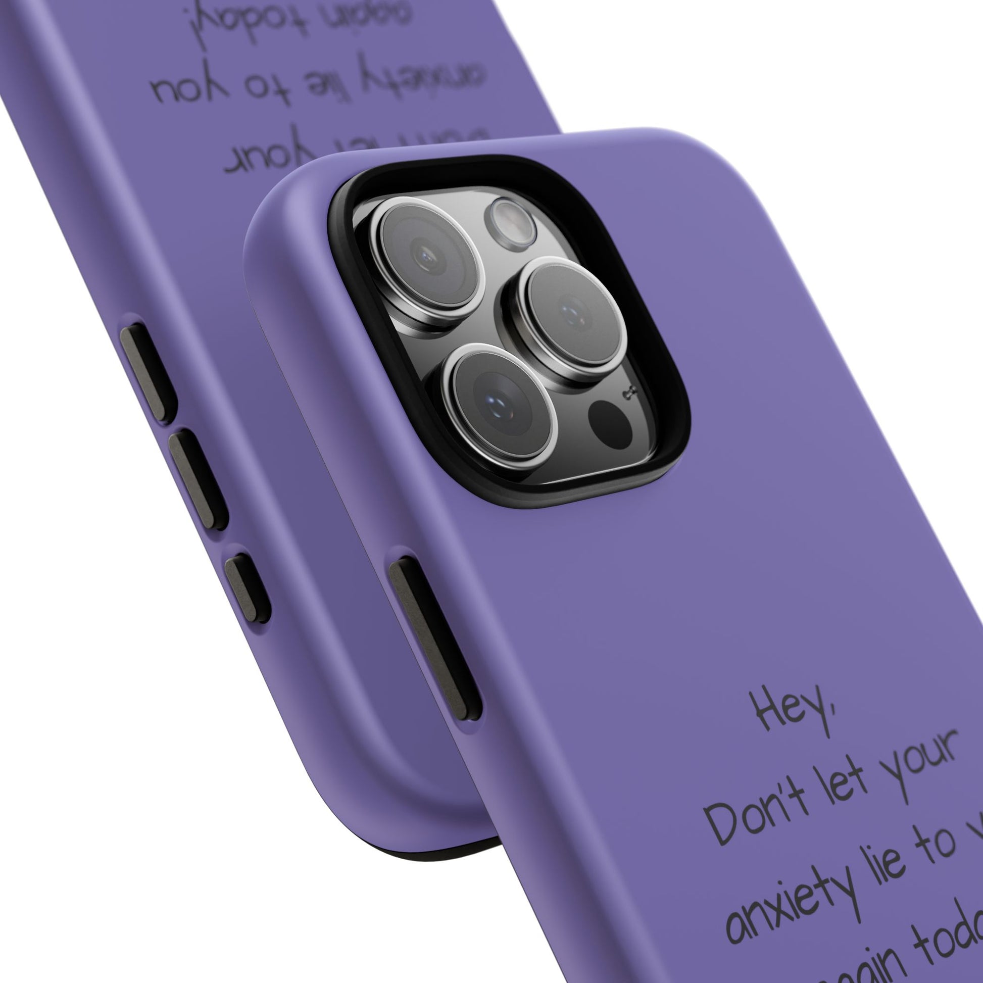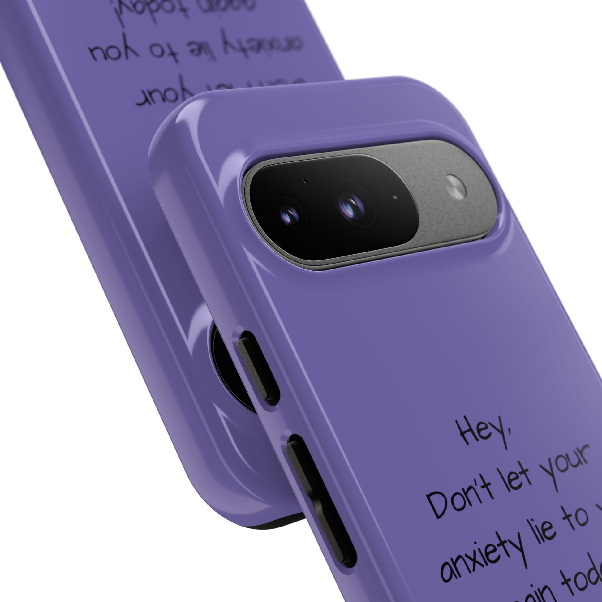 'Hey Don't let your anxiety lie to you again today!' Positive Vibes Phone Case - Anxiety Reminder, Colorful Tough Case