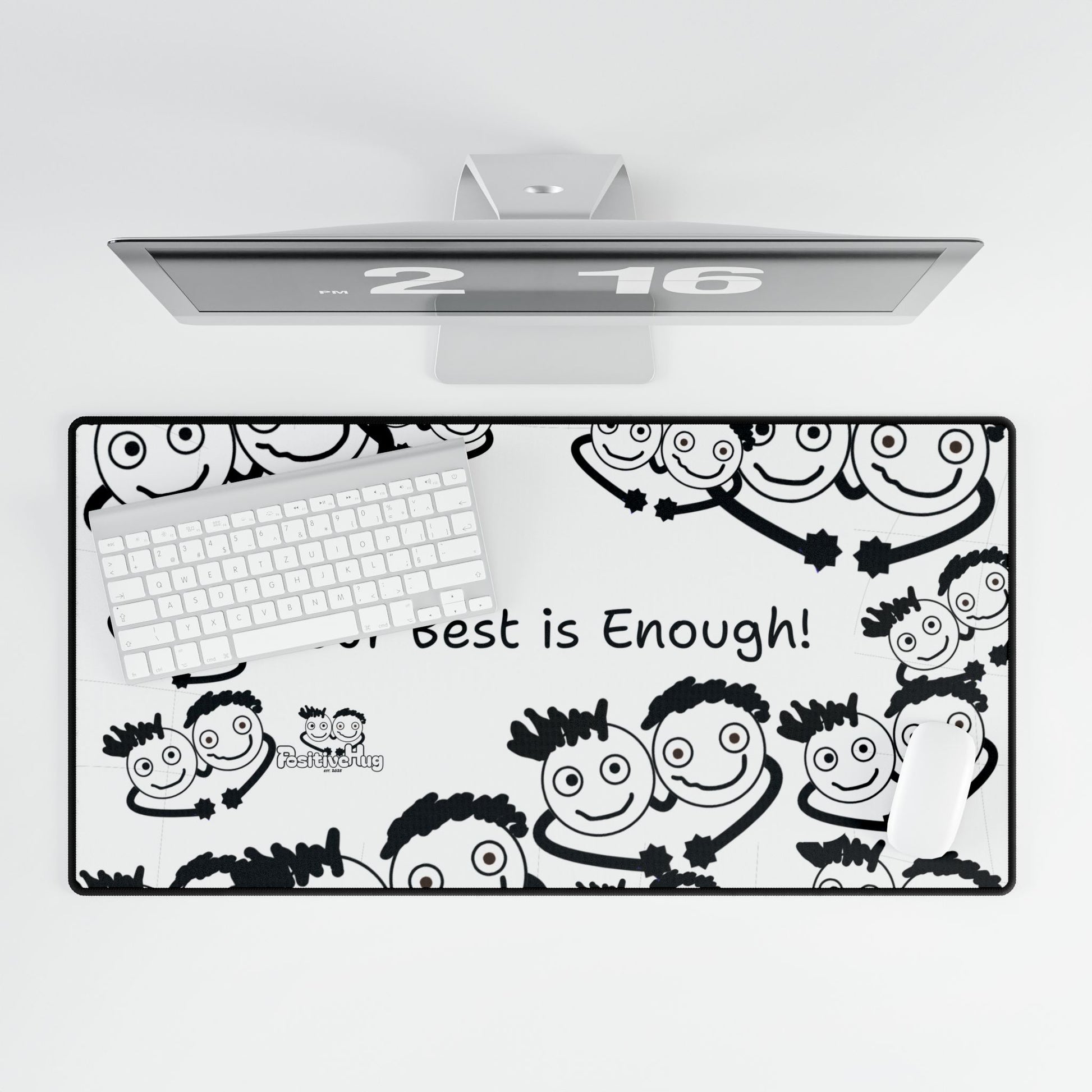 'Your Best is Enough!' Desk Mat by PositiveHug - All Over Logo Design - Fun Office Decor Unique Gift Idea